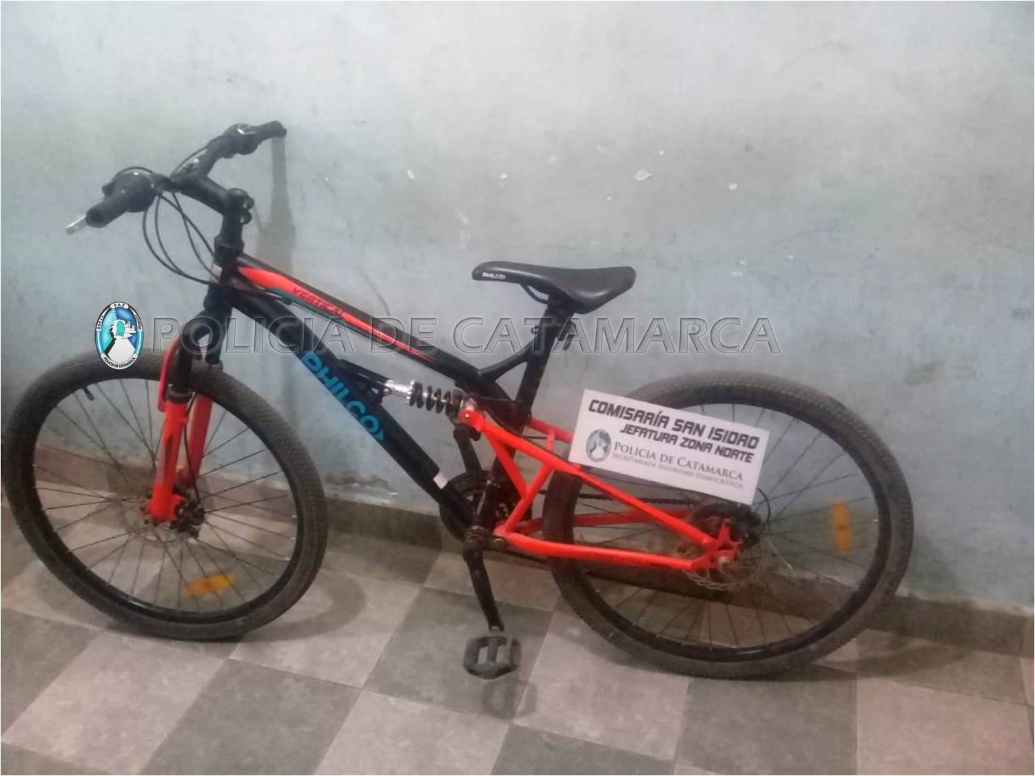En la calle Juan Pablo Vera, inmediaciones a las canchas del Club Obreros de San Isidro, en la ribera del Río del Valle de la localidad de San Isidro, Valle Viejo, procedieron a identificar a dos sujetos, quienes circulaban en una bicicleta rodado 26, marca Philco, de color negro, con vivos naranja y celeste.