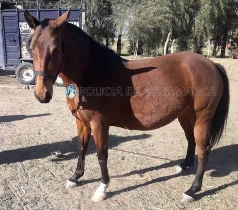 Más tarde, a las 09:15 de hoy, en inmediaciones a la Plaza del barrio Lomas del Tala, de la Capital, los Policías hicieron lo propio con una yegua zaina colorada, miembro anterior izquierdo blanco, con marca de fuego.