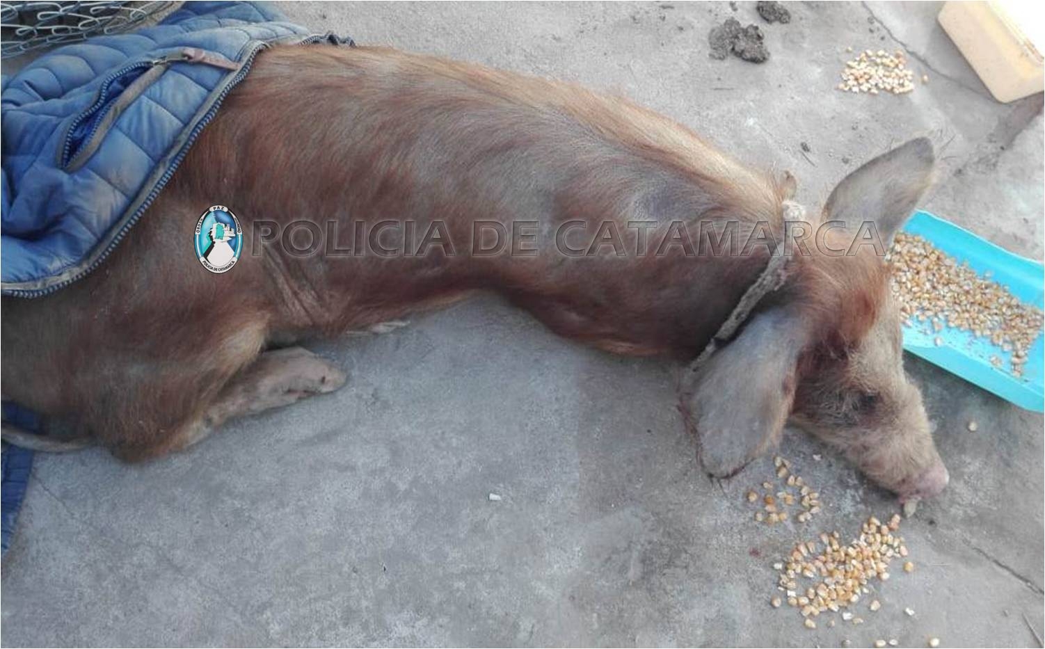 En el lugar, observó a dos sujetos que merodeaban en actitud sospechosa y, al percatarse de la presencia policial, emprendieron la fuga dejando abandonado en el lugar una bolsa arpillera en la que llevaban un animal porcino.