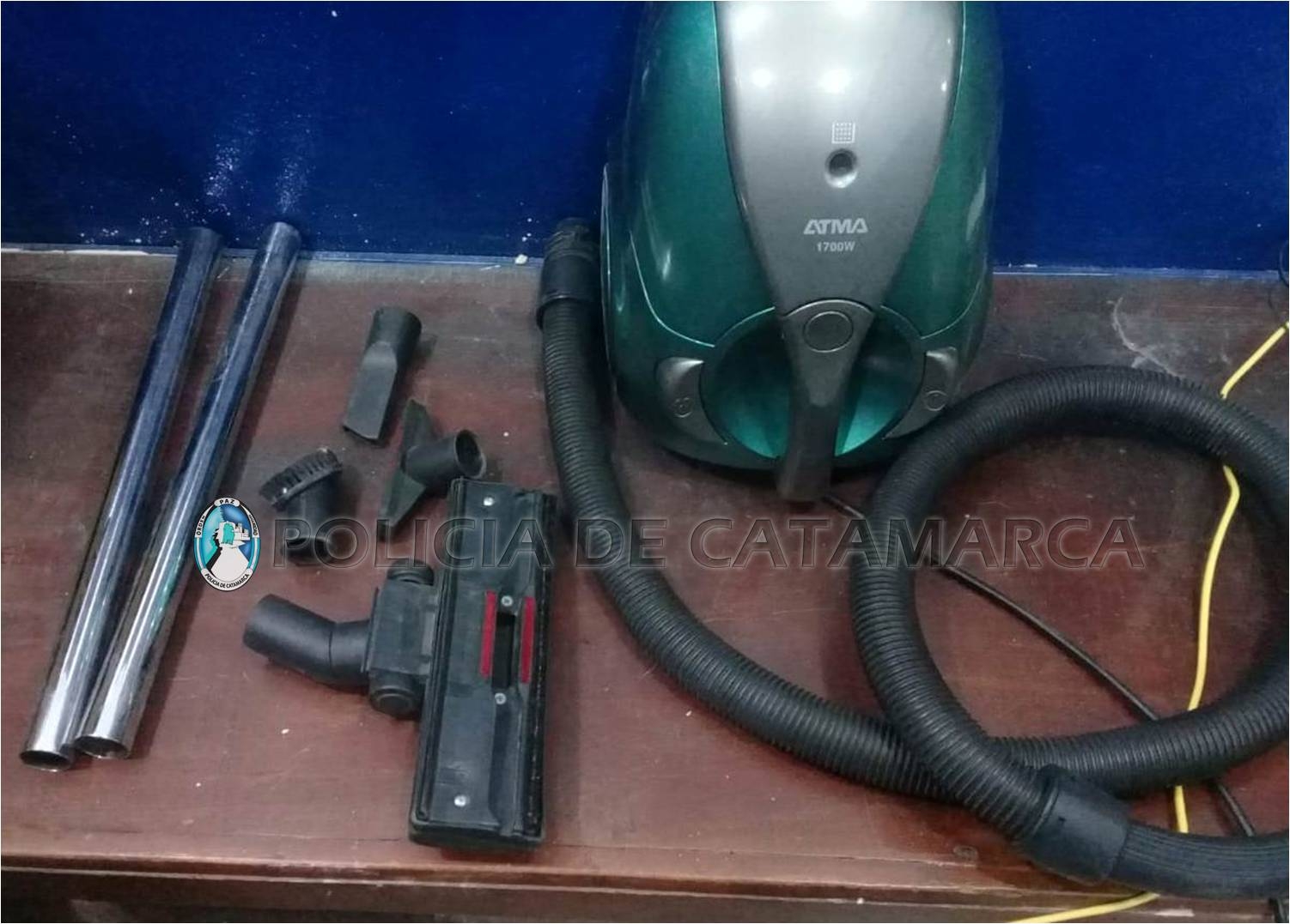 En el lugar, procedieron al secuestro de una aspiradora marca ATMA, de 1700 w., de color verde, que estaba abandonada oculta entre la maleza del lugar.