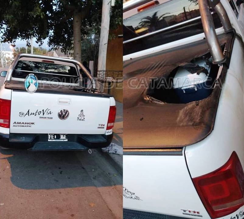 Al llegar al lugar, los policías constataron que, por causas que se investigan, el foco ígneo se habría originado en la caja de una camioneta Volkswagen Amarok blanca, dominio PBS-368 propiedad de un hombre de 57 años.