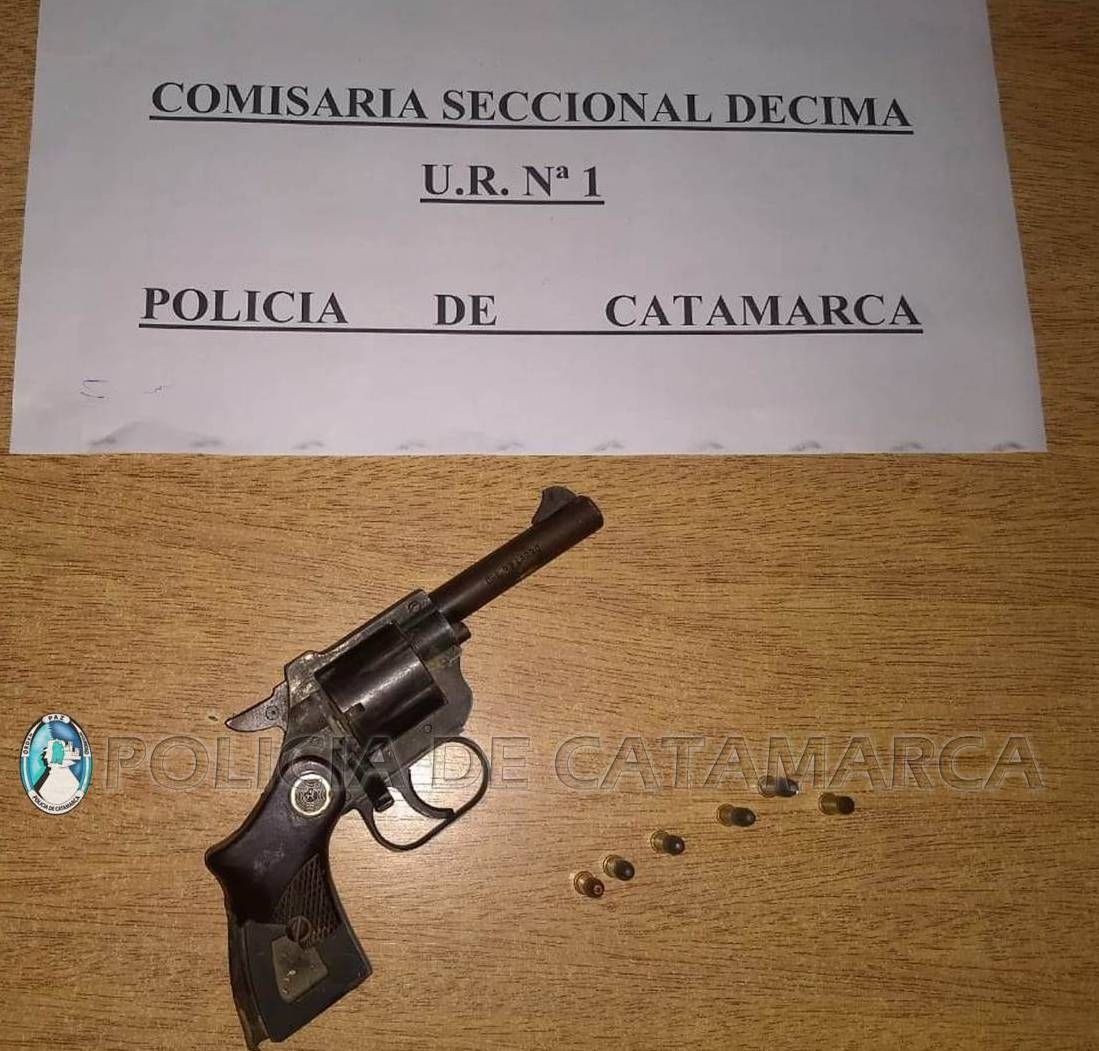 Al realizarle la requisa correspondiente, los policías encontraron entre sus prendas de vestir un revólver marca Tala, calibre 22, con cinco cartuchos y una vaina servida, que quedaron en calidad de secuestro.