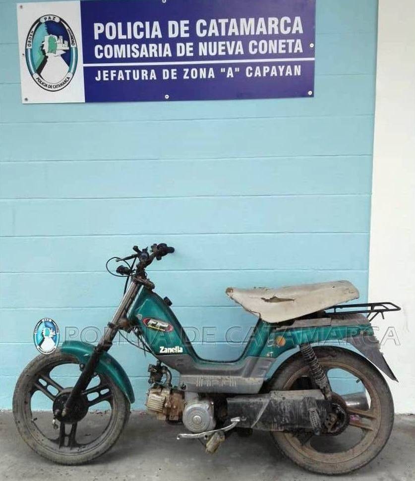 Por este motivo, efectivos de la Comisaría de Nueva Coneta llegaron hasta un descampado existente en inmediaciones a la ruta nacional Nº 38, donde lograron recuperar el rodado que estaba abandonado, oculto entre la maleza.