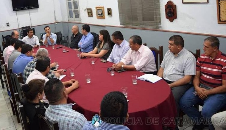 En la Sala de Situación de la Jefatura de Policía, se llevó a cabo hoy una reunión en la que participaron el Juez de Menores Nº 1, Rodrigo Morabito; el Secretario de Seguridad, Marcos Denett; el Jefe de Policía de la Provincia, Orlando Antonio Quevedo; a Subjefa de Policía, Ana del Valle Garay; el Inspector General de Policía, Carlos Alberto Carrizo; Jefes de Unidades Regionales y de Zonas, tanto de Capital como del interior provincial, y titulares de distintas dependencias del área Capital y Valle Viejo.