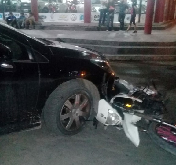 Un auto Peugeot 208, dominio PQU 308, color negro, conducido por Ana Cecilia Nouri impactó contra una motocicleta color blanco, al intentar girar en "U" en el Boulevard Rivadavia esquina Eva Perón.