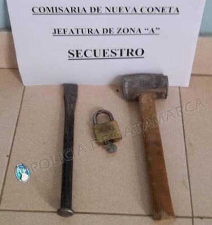 Se trata de una masa, un cortafierro y un candado con su respectiva llave, que le fueron robados a un hombre de 66 años mientras trabajaba en el Cementerio de esa localidad del Departamento Capayán.