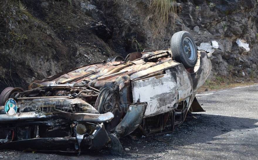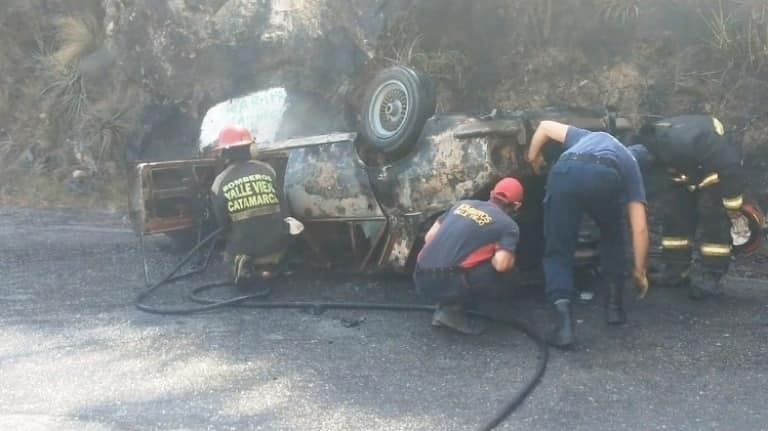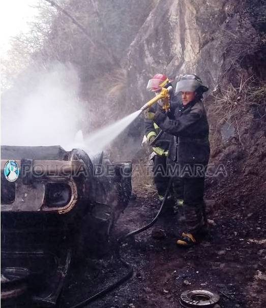 Exequiel Orlando Yáñez (27) circulaba en un automóvil Peugeot 504, dominio XNN-769, de color blanco, acompañado por Micaela Ramírez (24), un adolescente de 17 años, y dos niños de 1 y 7 años, y por razones que se investigan, perdió el control del rodado y terminó volcando en la calzada, para luego incendiarse resultando el vehículo totalmente dañado.
