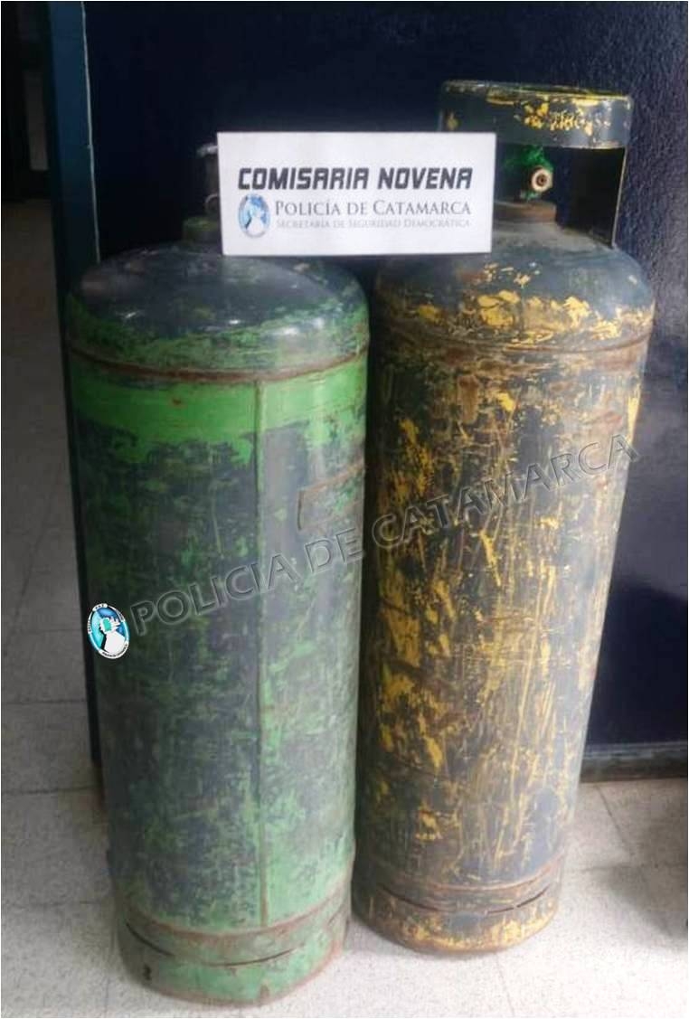 En el lugar, procedieron al secuestro de cilindros de gas de 45 Kg., de colores verde y amarillo, que estaban abandonados en un terreno baldío, ocultos entre la maleza del lugar.