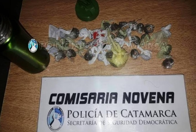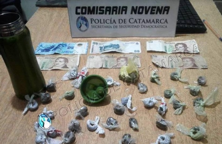 Al realizarles la requisa correspondiente, el personal policial interviniente encontró entre sus pertenencias la suma de $140 en efectivo, y un termo metálico de color verde que en su interior contenía 35 envoltorios de nylon conteniendo una sustancia herbácea.