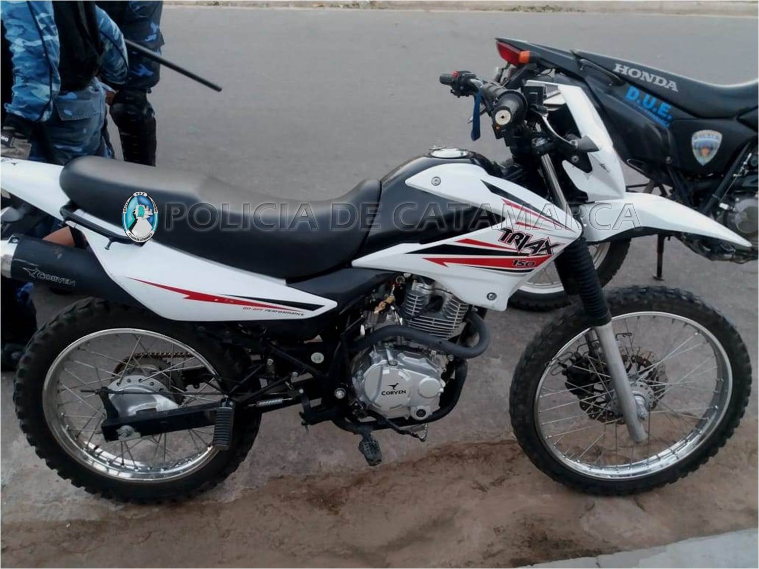 En ese momento, se inició una persecución que finalizó en la calle Francisco Moreno, entre Dr. Tomás Vergara y Dr. Francisco Figueroa, donde procedieron a la aprehensión de dos jóvenes de apellidos Luján y Abad, ambos de 22 años y al secuestro de una motocicleta Corven Triax 150 cc., de color blanco, en la que circulaban.