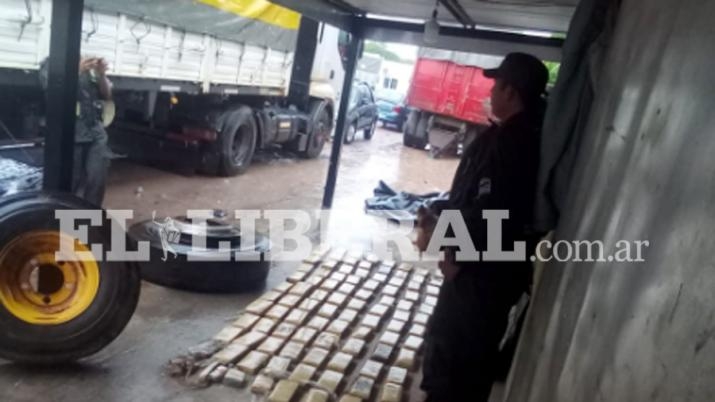 En un camión que transportaba agua mineral, se encontraron 100 ladrillos de marihuana escondidos en una rueda de auxilio. Las fuerzas nacionales aun están llevando adelante el procedimiento para determinar el pesaje. El Liberal.