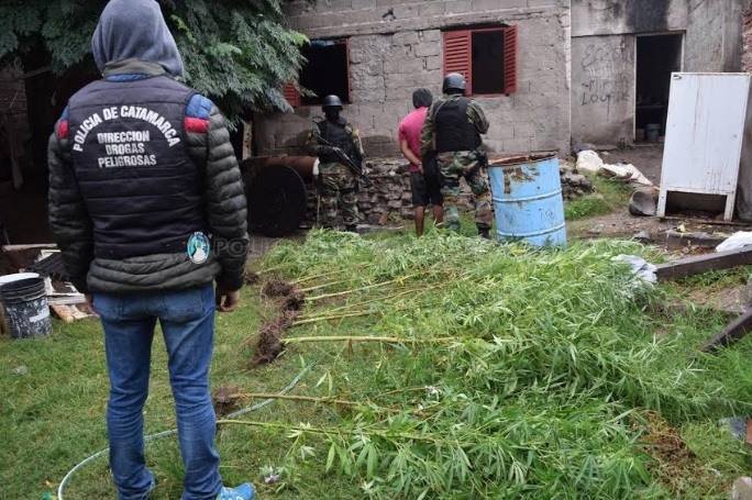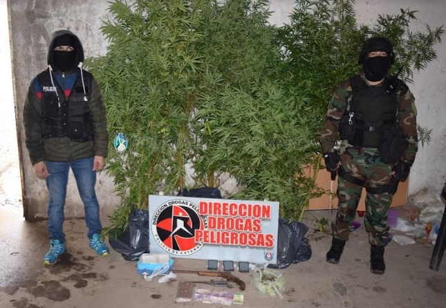 Tras una minuciosa tarea investigativa iniciada a partir de denuncias anónimas de vecinos de la zona y otras efectuadas a la línea gratuita de la Dirección Drogas Peligrosas 0800-5556637, bajo las directivas del Juzgado Federal en feria a cargo del Dr. Miguel Ángel Contreras, secretaría a cargo del Dr. Mauricio Alberto Paliza Rodríguez, los efectivos irrumpieron en la morada y secuestraron 11 plantas de la variedad Cannabis Sativa, de entre uno y tres metros y medio de altura, que estaban siendo cultivadas en el fondo del inmueble, disimuladas entre plantas enredaderas, una escopeta calibre 16 recortada, una bolsa y dos envoltorios de nylon conteniendo picadura de Marihuana, cuatro teléfonos celulares de distintas marcas y modelos, un cuchillo con restos de la sustancia estupefaciente, y dinero en efectivo, discriminado en billetes de distinta denominación.
