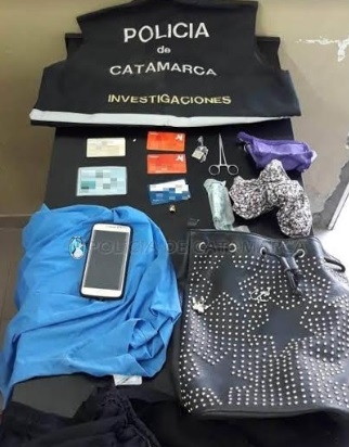 Allí secuestraron una cartera de color negro con tachas, cinco tarjetas de crédito, un carnet de OSEP, un DNI, una cadenita de plata con dije de San Expedito, una chaquetilla, cuatro gorros de quirófano y un teléfono celular marca Motorola modelo G-4 Plus.