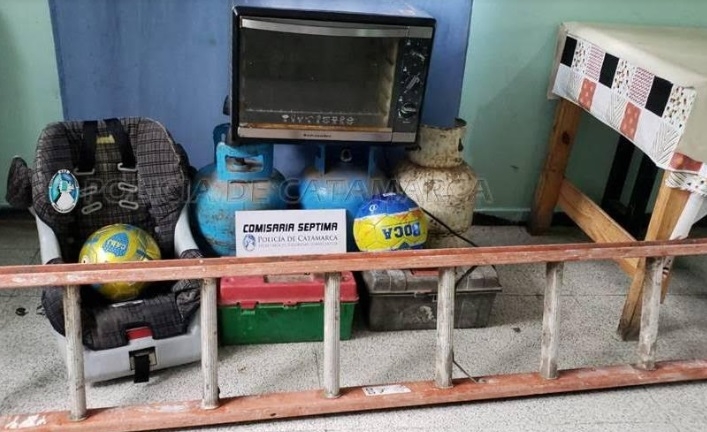 En el lugar, los policías procedieron al secuestro de dos garrafas de gas verde de 10 kg., y una escalera metálica, de color anaranjado, mientras que en la Manzana “I”, del barrio mencionado incautaron otra garrafa de 10 kg., de color blanco, dos cajas de herramientas, de colores verde y rosa y la restante de color negro, dos pelotas de fútbol y una silla para bebé.