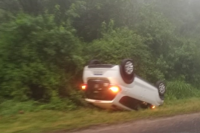 En la tarde de hoy, a las 17.50, en la ruta provincial N° 4, a la altura del kilómetro 17, se produjo un siniestro vial protagonizado por un automóvil Fiat Mobi, dominio AA 989 XO, de color blanco, conducido por Marta Graciela Olveira Gómez (76), que por motivos que se investigan perdió el control del rodado y terminó volcando sobre la banquina.
