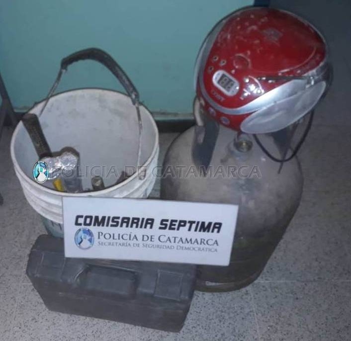 En el lugar, aprehendió a un joven de apellido Alaniz, de 23 años, quien habría sido sorprendido llevando una garrafa de gas de 10 kg., un radio grabador gris con negro, un balde de 10 Lts., de color blanco, dos espátulas, una cinta métrica roja, tres destornilladores, una pinza, un mandril, una grinfa, una lijadora con su respectivo estuche de color negro, una llave Ale, dos mazas, cuatro llaves combinadas, un alicate y una mecha.