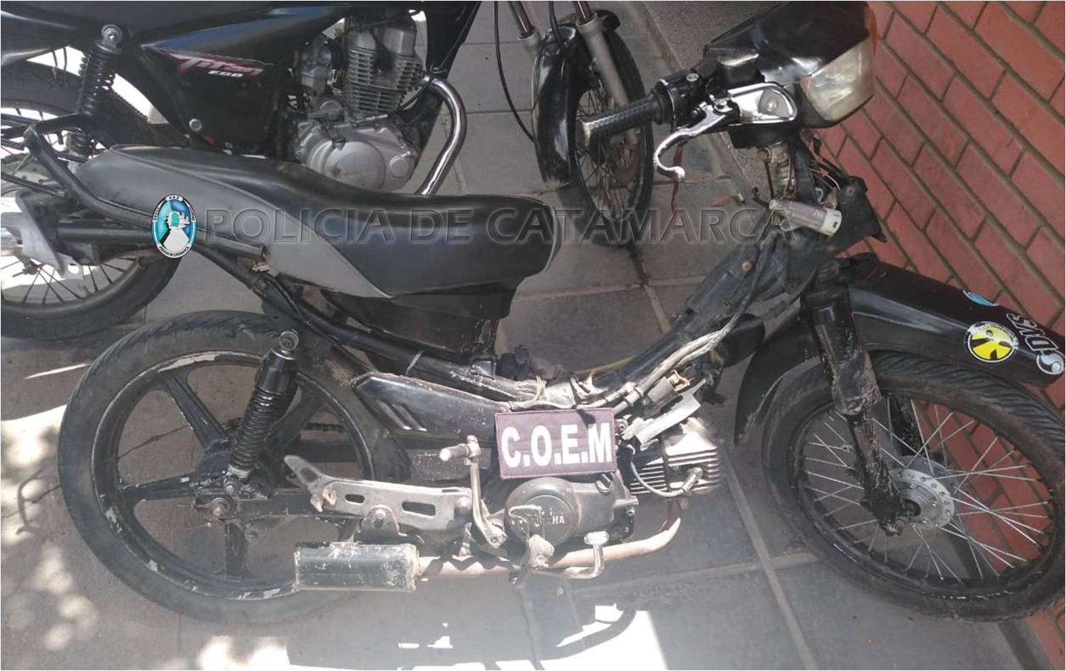 En inmediaciones al Barrio 80 viviendas norte, observó a dos jóvenes que se conducían en dos motocicletas; una Honda CG Titán 150 cc., dominio 971-JXS, de color negro, y una Yamaha Crypton negra 110 cc.