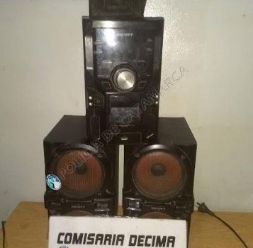 A las 14 de hoy, en la Manzana Nº 77, del B° Virgen Niña, policías observaron que una persona del sexo masculino llevaba un equipo de música marca Escott, de color negro.