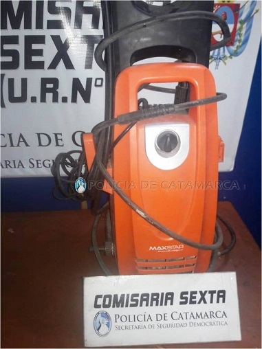 Hoy, a las 20, a raíz de un llamado telefónico, personal de la Comisaría Sexta llegó hasta un domicilio del barrio 107 viviendas sur donde secuestró una hidrolavadora Maxstar, que fue entregada de manera voluntaria por una mujer de 37 años.