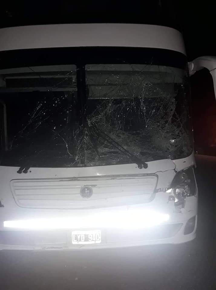 Al pasar por ruta 20 por la localidad de Esquiú, en La Paz, el colectivo chocó de frente con un caballo, y por la afortunada maniobra del conductor, evitó que la unidad volcara.