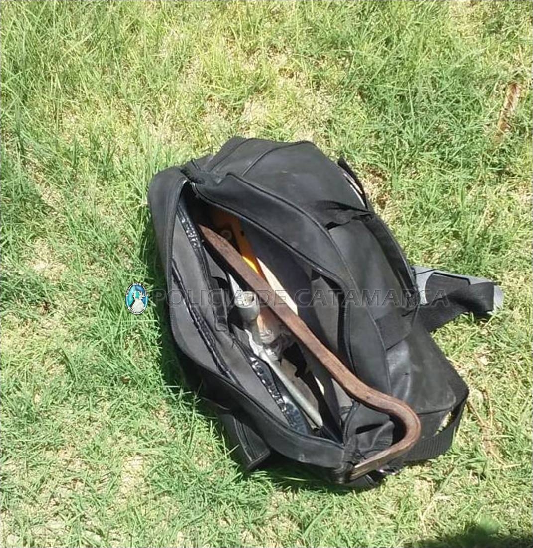 Al realizarles la requisa correspondiente, los policías encontraron entre sus pertenencias un bolso que contenía herramientas varias, que quedaron en calidad de secuestro al igual que una motocicleta Gilera Smash 110 cc., en la que se conducían.