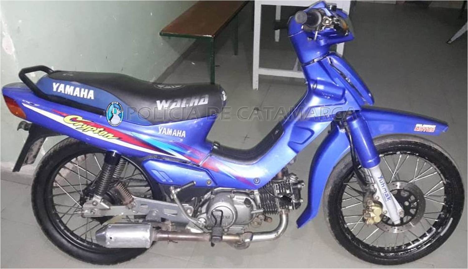 Efectivos de la Comisaría Cuarta intentaron identificar al conductor de una motocicleta Yamaha Crypton azul, 110 cc., quien al notar la presencia policial, se dio a la fuga iniciándose una persecución que finalizó en el Pasaje Vucetich, donde esta persona abandonó el rodado y continuó la huída a pie.
