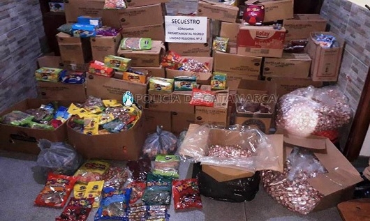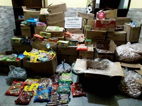 Secuestraron más de 70 cajas de caramelos de la línea ARCOR, de distintas variedades, al igual que bolsas de 50 kilogramos, y bolsas varias de consorcio, quedando arrestada una persona de apellido Gomez de 31 años.