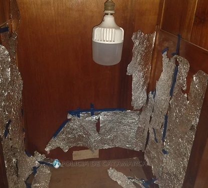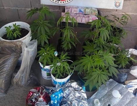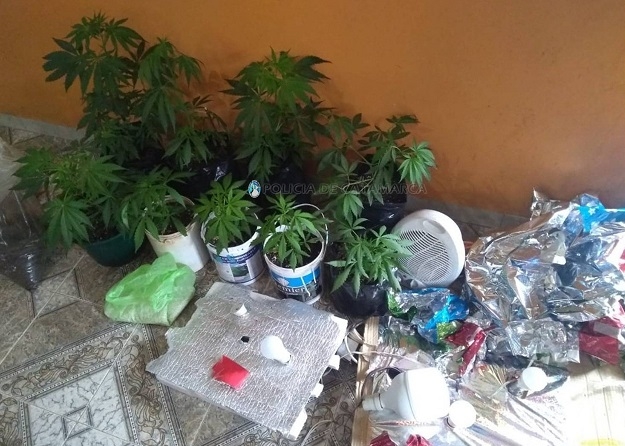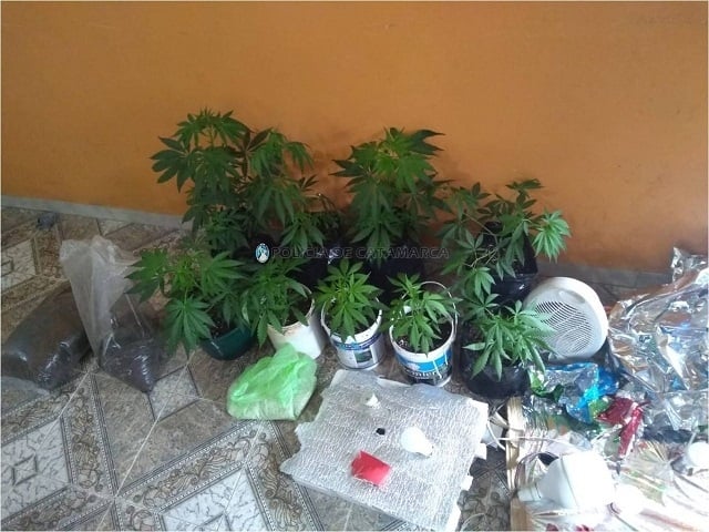 Tras ingresar a un domicilio de calle Los Regionales al 1.500 de esta Ciudad Capital, y a una vivienda ubicada en la ruta provincial N° 41, a metros de la escuela N°265 de la localidad de Piedra Blanca, Fray Mamerto Esquiú, conjuntamente con sus pares de la División de Operaciones Especiales Kuntur, los investigadores secuestraron trece plantas de la variedad Cannabis Sativa, de entre 55 cm. y 1 Mt. de altura, que estaban siendo cultivadas en macetas y en un invernadero artificial armado en un sector de la morada.