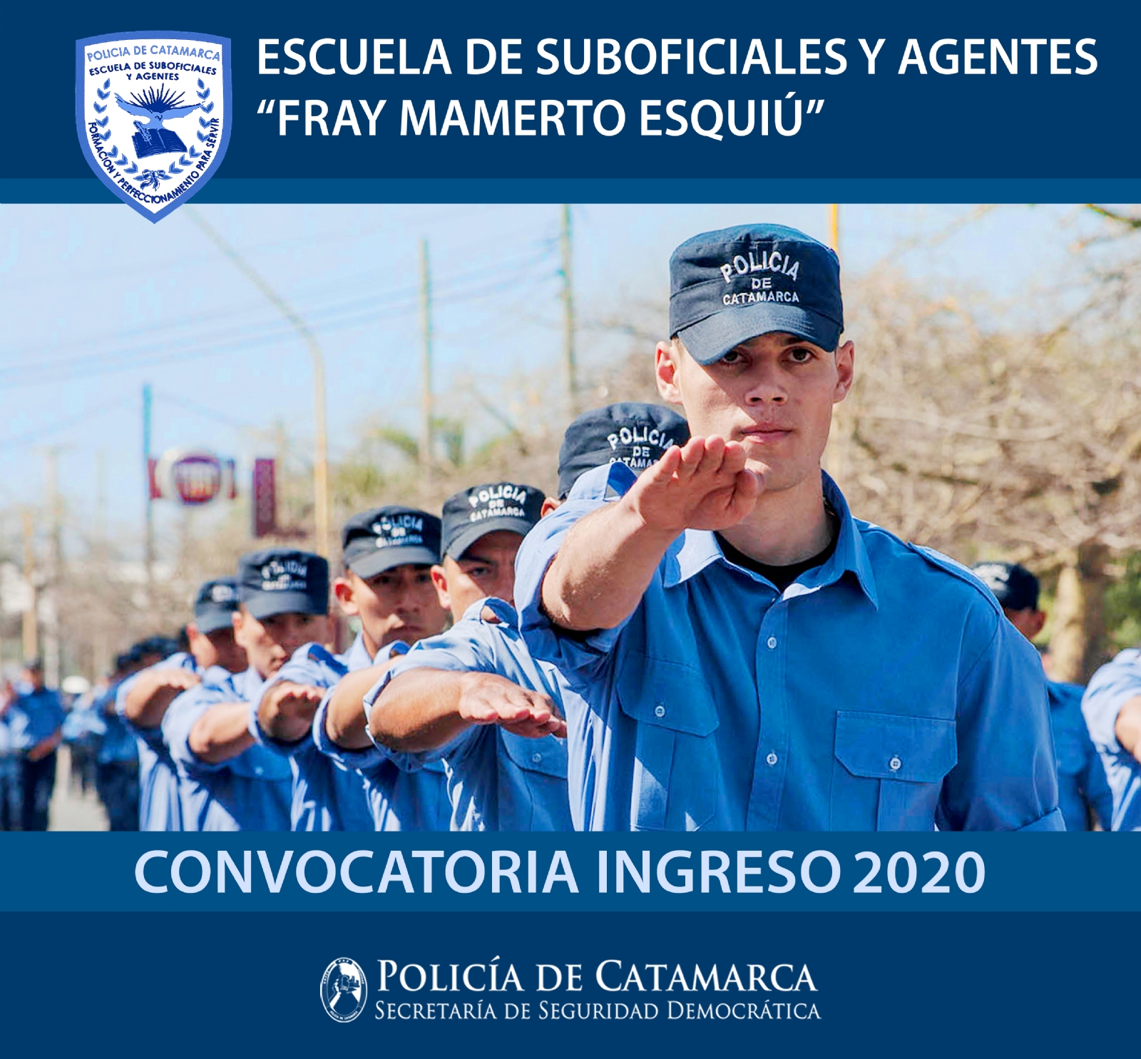 La Dirección de la Escuela de Suboficiales y Agentes "Fray Mamerto Esquiú" de la Policía de la Provincia informa a los postulantes inscriptos para el ingreso 2020 que deberán presentarse vistiendo ropa de gimnasia, en esa Casa de Estudios Policiales ubicada en la calle Eusebio Ruso al 100 de la localidad de Villa Dolores, Valle Viejo, para el examen de talla y peso.