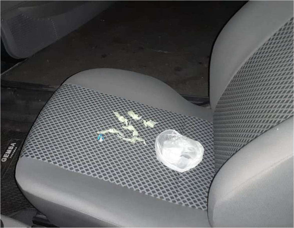 Al momento de inspeccionar el rodado, los policías encontraron en el habitáculo seis envoltorios de nylon, que en su interior contenían una sustancia tipo herbácea, en virtud de lo cual solicitaron la presencia de sus pares de la Dirección Drogas Peligrosas de la Policía de la Provincia.