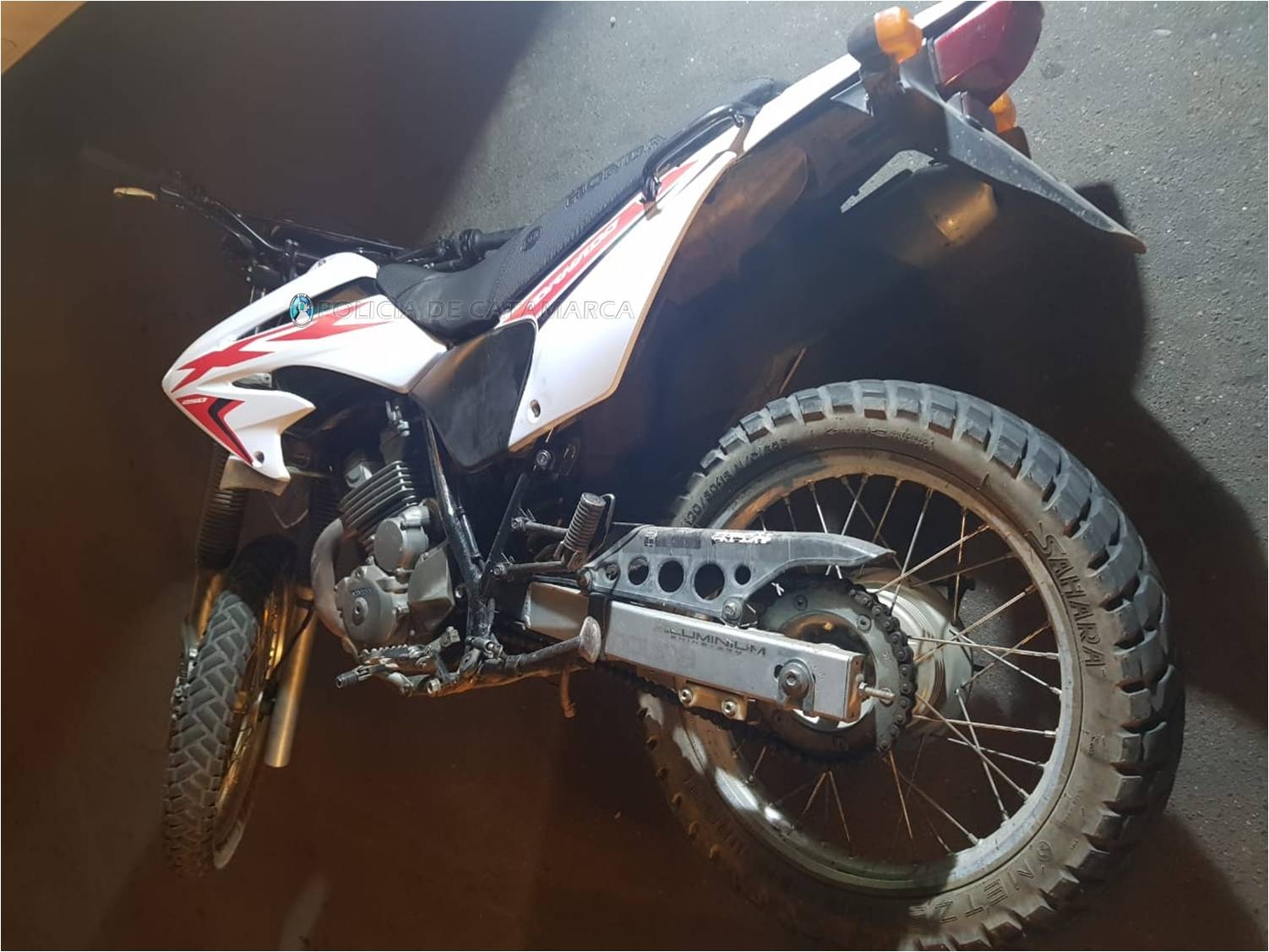 En el lugar, sorprendieron a un sujeto a bordo de una motocicleta Honda Tornado 250 cc., de colores blanco y rojo, merodeando en actitud sospechosa, y al percatarse de la presencia policial, habría arrojado un casco protector contra los policías y emprendió la fuga.