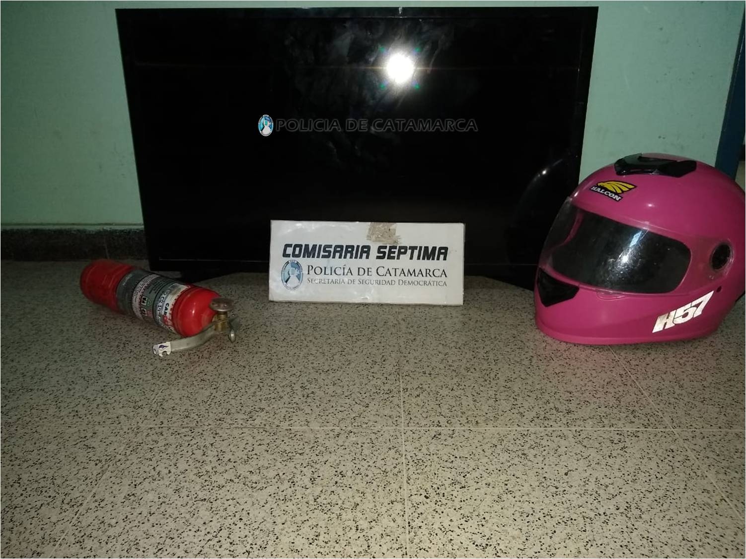 De acuerdo a la características brindadas, a los pocos metros, procedieron a la aprehensión de un joven de apellido Orellana (19), quien habría sido sorprendido llevando un TV Led marca Samsung de 32 pulgadas, de color negro, un casco protector para motocicleta Halcón rosado y un matafuego de 1 Kg., de color rojo, que quedaron en calidad de secuestro ya que no pudo acreditar su legitima propiedad y procedencia.
