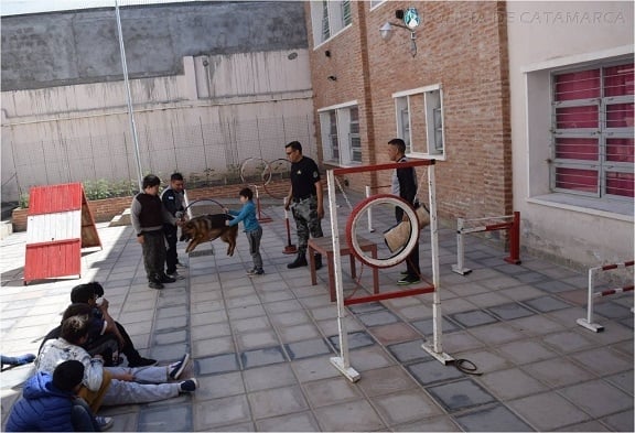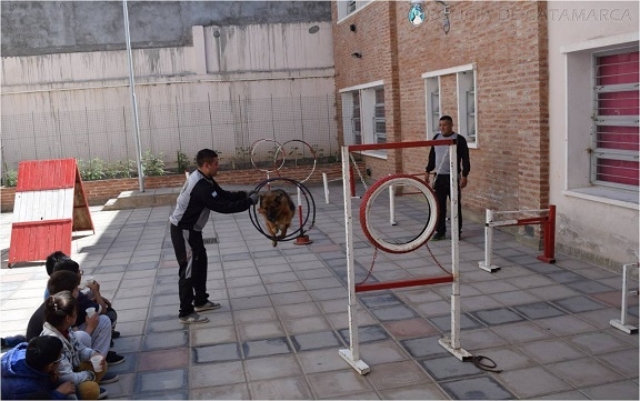 En la oportunidad, el personal dio una charla a los alumnos sobre cuidados, alimentación, juego y comunicación canina, como así también mostró las tareas que realizan los canes adiestrados durante los trabajos de disciplina básica y habilidades en pista con saltos en vallas, aros, entre otros, al igual que las destrezas de los animales que se encuentran en una etapa avanzada de búsqueda y rescate de personas con vida en grandes áreas y estructuras colapsadas.