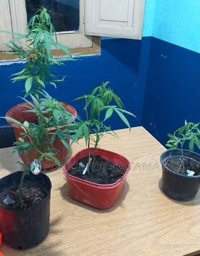 Los efectivos policiales, conjuntamente con personal Caminante Zeta perteneciente a la Jefatura de Zona Norte de la Unidad Regional Nº 1, procedieron al secuestro de cuatro plantines de marihuana, que estaban siendo cultivados en recipientes de plástico por personas desconocidas.