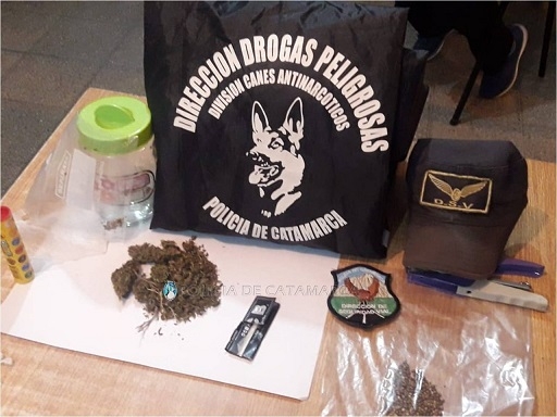 Al momento realizarles la requisa correspondiente, el personal policial interviniente encontró entre sus pertenencias un frasco de vidrio que en su interior contenía una sustancia tipo herbácea que al ser sometida a la prueba de campo, se estableció que se trataban de 13 Gr. de Marihuana, que quedaron en calidad de secuestro al igual que gran cantidad de semillas de la variedad Cannabis Sativa, tomando intervención el Juzgado Federal.