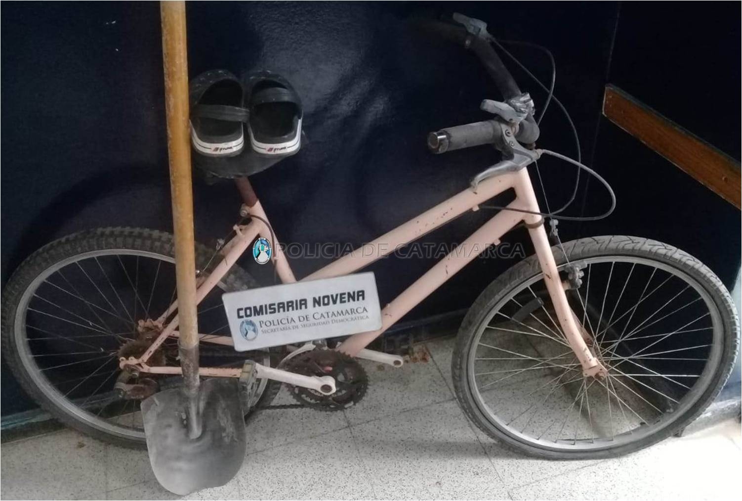 De acuerdo a las características brindadas, los efectivos realizaron amplios recorridos por la zona, y en la Avenida Los Minerales, a la altura del velódromo, procedieron a la demora de dos adolescentes de 16 años, y al secuestro de una bicicleta rodado N° 26, de color beige, una pala punta corazón y un par de Cross, que quedaron en calidad de secuestro.