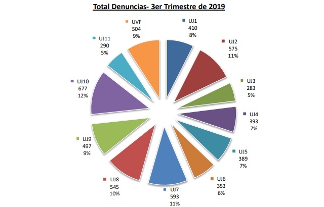 Asimismo, la mayoría de las denuncias fue realizada en la Unidad Judicial N°10 (12%); en segundo lugar aparecen las unidades judiciales N°2 y N°7 (11%); en tercer lugar las unidades Judiciales N°8 y N°1 (10%) y en cuarto lugar la Unidad de Violencia Familiar y la Unidad Judicial N°9 (9%).
