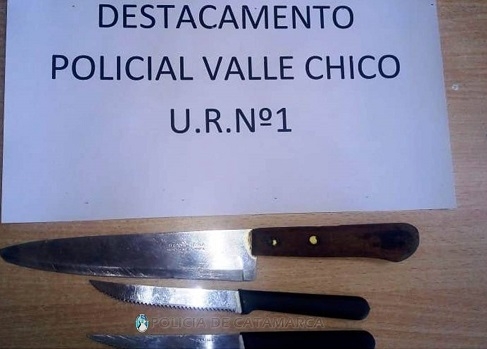 Cabe señalar, que al momento de ser identificados, estas personas intentaron agredir físicamente al personal policial interviniente, y al realizarle la requisa correspondiente les encontraron entres sus prendas de vestir dos cuchillos tipo tramontina y una cuchilla tipo carnicero, que quedaron en calidad de secuestro.