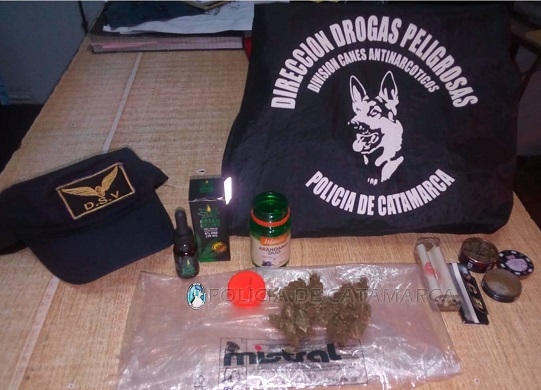 Al inspeccionar el rodado, los Policías encontraron en el interior del habitáculo un envoltorio conteniendo 17 Gr. de Cogollos de Marihuana, y un frasco de aceite de Cannabis, que quedaron en calidad de secuestro.