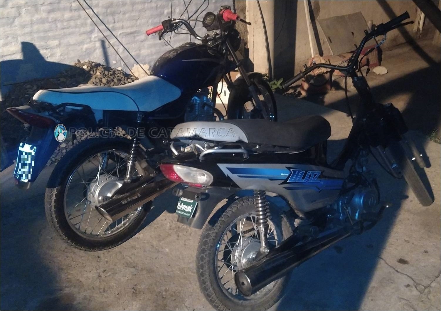 En la Avenida Juan Pablo II, en inmediaciones a la intersección con Avenida Enrique Ocampo, procedieron a controlar dos motocicletas, una Motomel Blitz 110 cc., de color gris y otra Motomel S2 azul 150 cc., en la que circulaban dos jóvenes de 18 y 21 años.