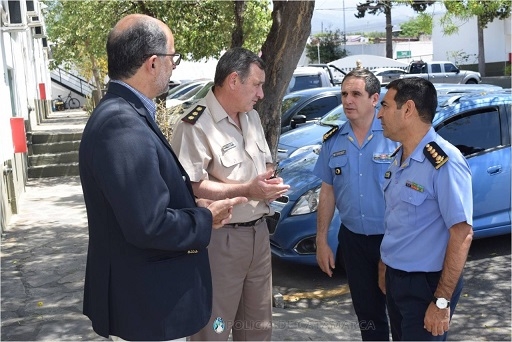 El secretario de Seguridad Marcos Denett; el Jefe de Policía Orlando Quevedo; y el Subjefe de la fuerza Carlos Kunz, participaron en la base de Agrupación VIII Catamarca de Gendarmería Nacional de la presentación y puesta en funcionamiento de un Cromatografo Gaseoso GC 2010 Plus.