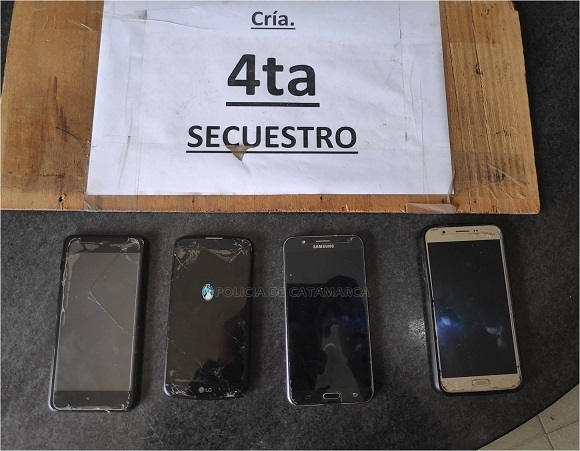 De inmediato y de acuerdo a las características brindadas, el personal policial interviniente realizó amplios recorridos por la zona y, en la Avenida Belgrano al 300, aprehendió a dos jóvenes de apellidos Solórzano (18) y Tapia (19), a quienes al momento de realizarles la requisa les encontraron entre las prendas de vestir, el aparato de comunicación sustraído que quedó en calidad de secuestro, al igual que otros tres teléfonos celulares de dudosa procedencia.