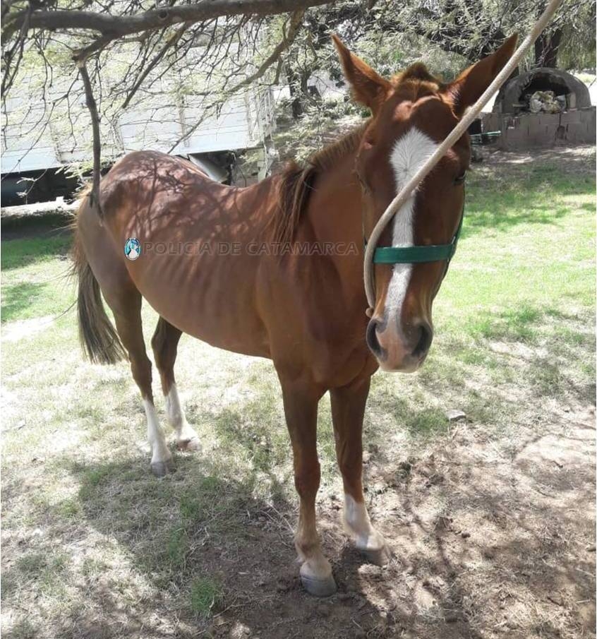 En la ruta provincial Nº 33, a la altura de la finca Cerro Gaucho, de la localidad de Sumalao, Valle Viejo, procedió al secuestro de una yegua pelaje tostada listada, miembros posteriores y anterior izquierdo blancos, sin marca de fuego.