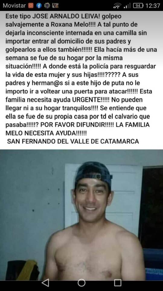 A través de Facebook publicaron el pedido a las autoridades para que tomen cartas en el asunto por un sujeto violento que dejó internada con graves secuelas a una mujer. Toda la familia teme represalias.