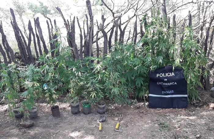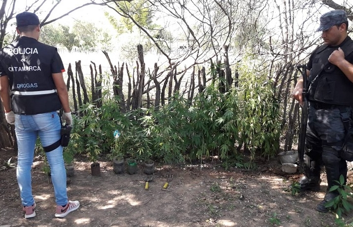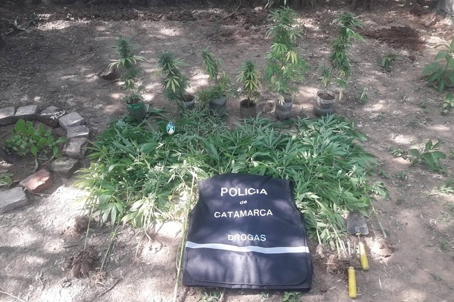 En el lugar, los uniformados secuestraron 46 plantas de Marihuana de distintos tamaños, que estaban siendo cultivadas en el fondo del inmueble, un pote de crema de Cannabis, y un teléfono celular.