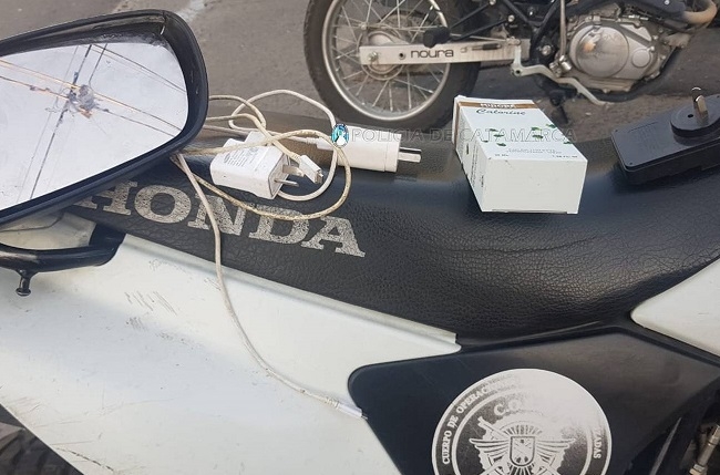 El sujeto, al percatarse de la presencia policial, ocultó entre sus prendas de vestir una bolsa de nylon, de color blanco, que contenía en su interior un espejo retrovisor negro de automóvil, dos cargadores para teléfonos celulares, marca Samsung y Huawei de color blanco, un cargador universal negro, marca Only y un perfume, que quedaron en calidad de secuestro hasta determinar su legitima propiedad y procedencia.