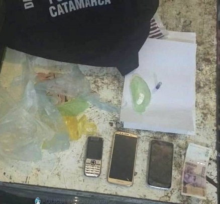Luego, la Justicia Federal dispuso allanar un domicilio ubicado en la intersección de las calles 25 de mayo y Sarmiento de Tinogasta, y los efectivos irrumpieron en la morada e incautaron tres teléfonos celulares de distintas marcas y modelos, elementos para fraccionar la sustancia estupefaciente, $100 en efectivo, y un envoltorio de nylon conteniendo Cocaína.
