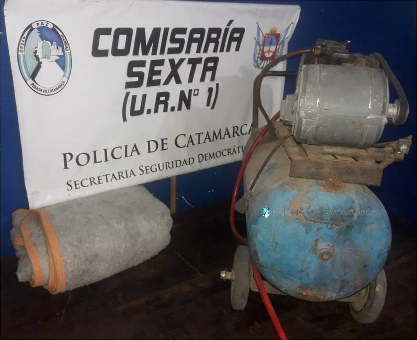 Se trata de un compresor de color azul, con motor y manguera de color rojo, marca Sisten Block, una colcha de algodón de una plaza y media, de color gris, los cuales habrían sido entregados de forma espontánea en la dependencia policial por un joven de 28 años, quien manifestó que los habría adquirido de buena fe y que luego tomó conocimiento que los mismos serían producto de un ilícito.