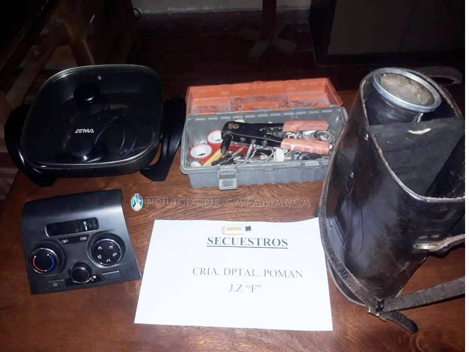 En el lugar, logró recuperar una caja con herramientas, una olla eléctrica marca ATMA, un pendrive marca Kingston de 8 GB, un set matero de cuero y un comando de aire acondicionado de una camioneta Chevrolet S-10, que quedaron en calidad de secuestro.