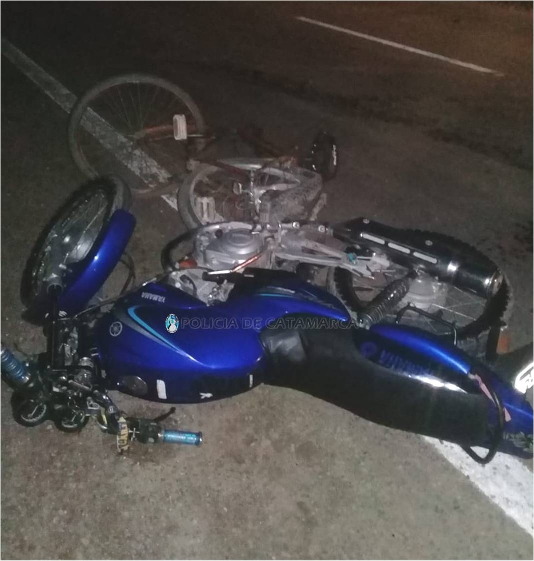 Luis Díaz (20) circulaba en una motocicleta Yamaha YBR 125 cc., dominio 325-JAB, de color azul, en compañía de Claribel Fernández (20) y de una niña de 2 años, y por causas que se investigan, embistió a una bicicleta Tomaselli rodado N° 26, de color anaranjado, al mando de José Emilio Ortiz (71).